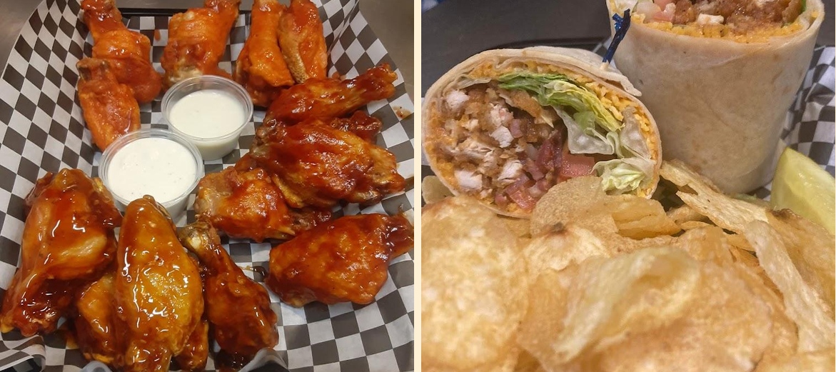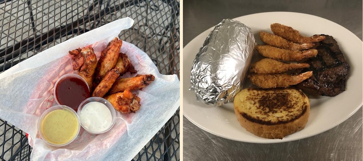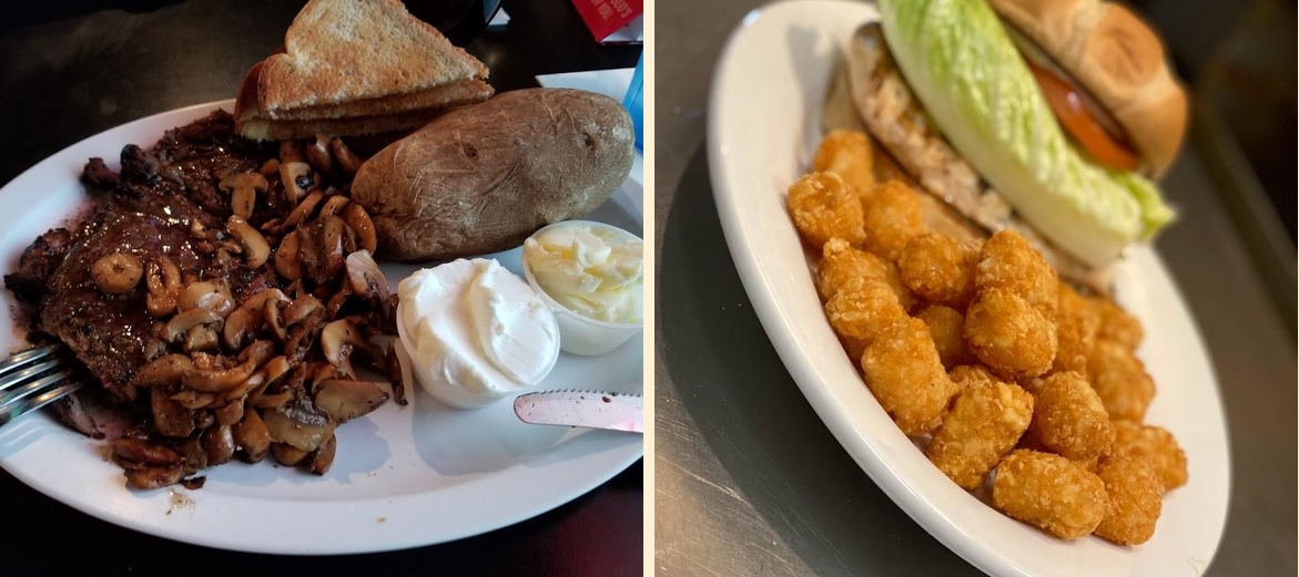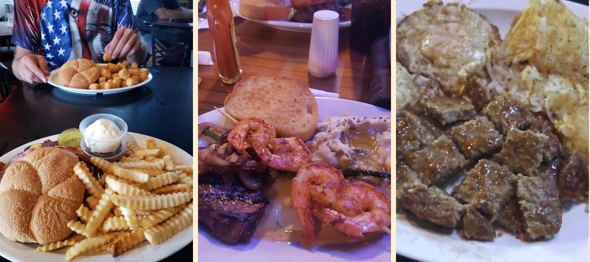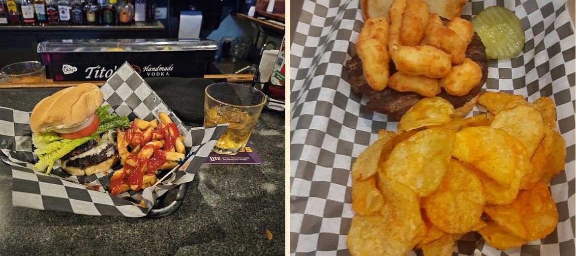 Roadhouse 169 Bar & Grill serves traditional American food. The menu includes burgers, salads, appetizers, and local specialties. Favorites include the half-pound burgers and the delicious chicken strips.