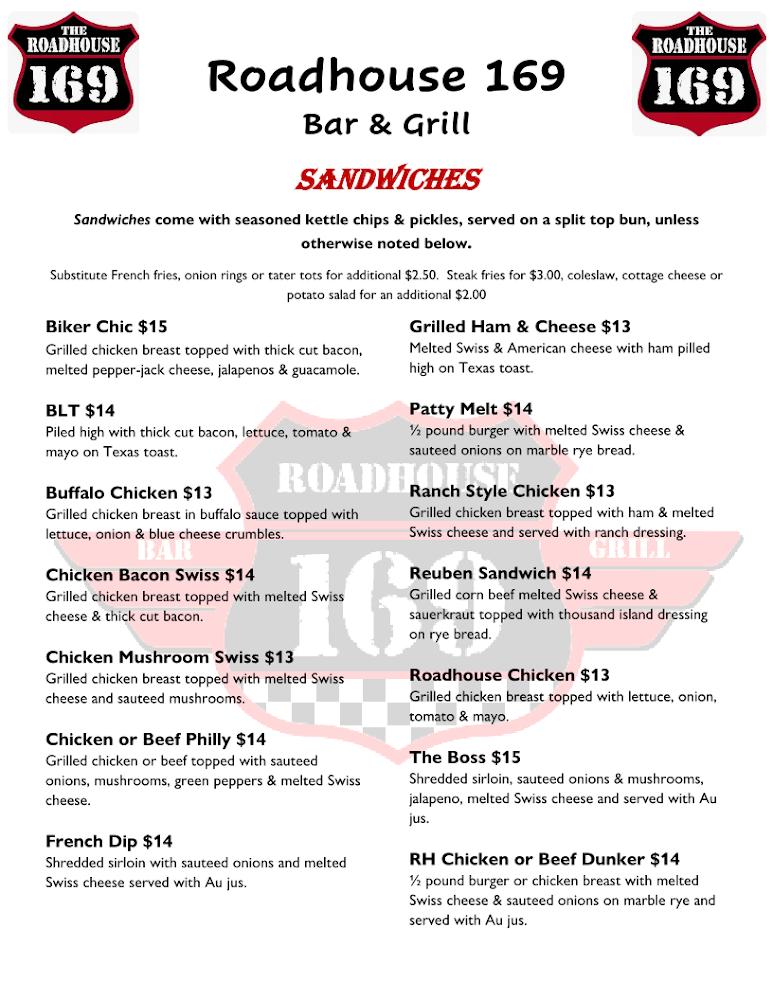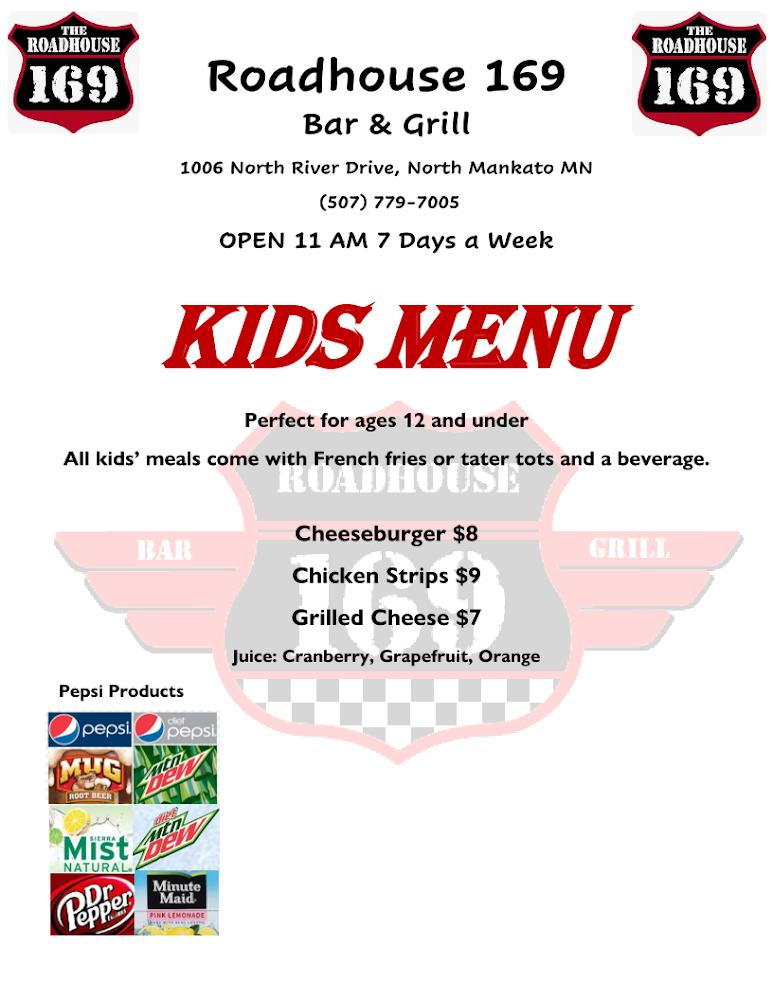 Welcome to Roadhouse 169 Bar & Grill, your go-to spot on the west riverbank of North Mankato! Enjoy a warm atmosphere complemented by a full bar, daily specials, and a tantalizing menu featuring local specialties. Whether you're dining solo, grabbing a quick bite, or enjoying a leisurely dinner with friends, our diverse offerings range from mouthwatering grilled dishes to excellent cocktails and a wide selection of beers. Join us for live music, sports events, or a fun karaoke night, all while relaxing by our fireplace. Conveniently accessible for everyone, Roadhouse 169 is the perfect place to unwind and indulge!